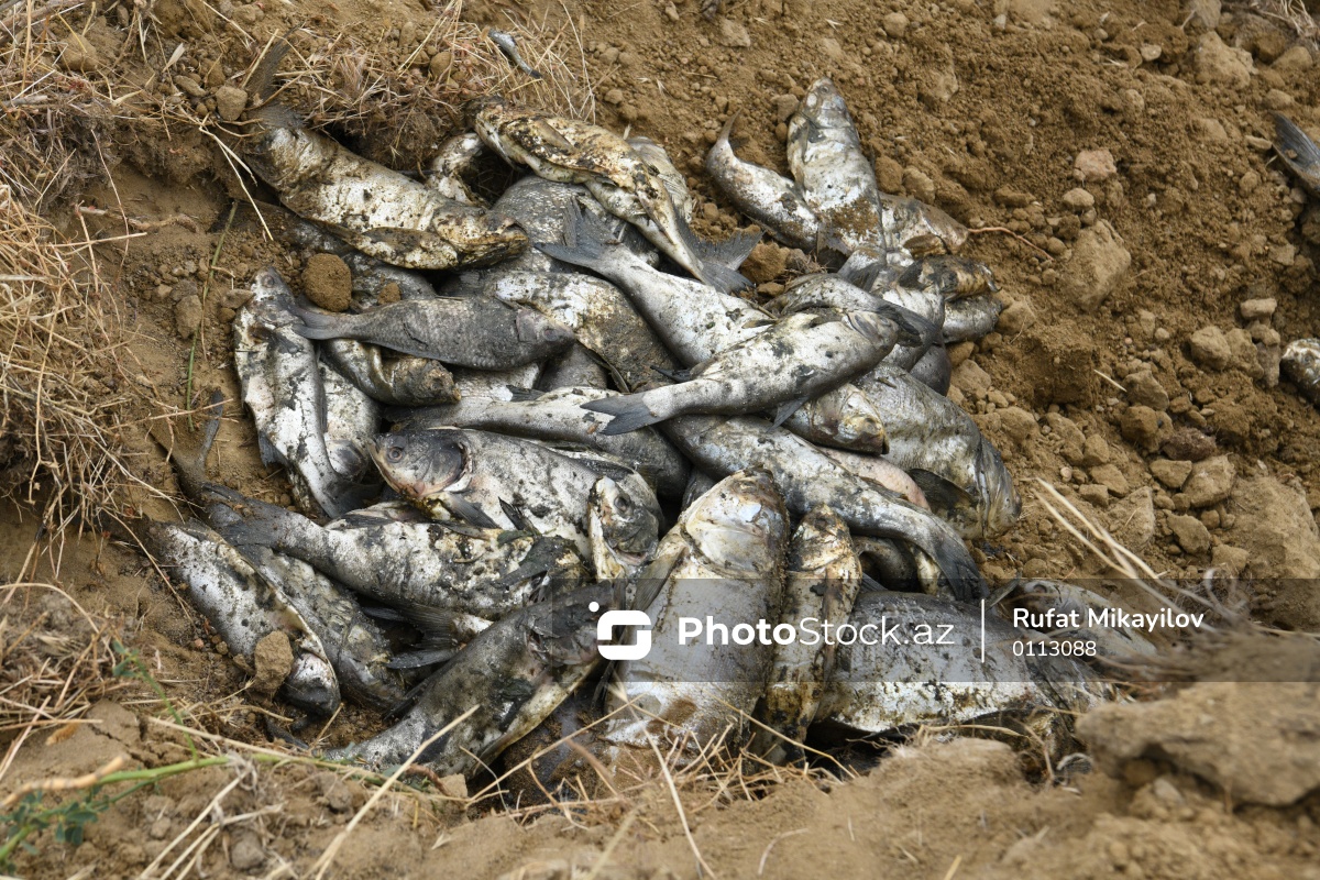 Abşeron rayonu Məhəmmədi kəndində yerləşən göldə balıqlar tələf olub