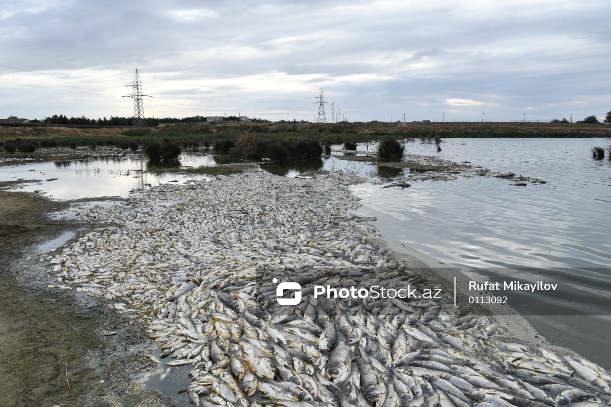 Abşeron rayonu Məhəmmədi kəndində yerləşən göldə balıqlar tələf olub