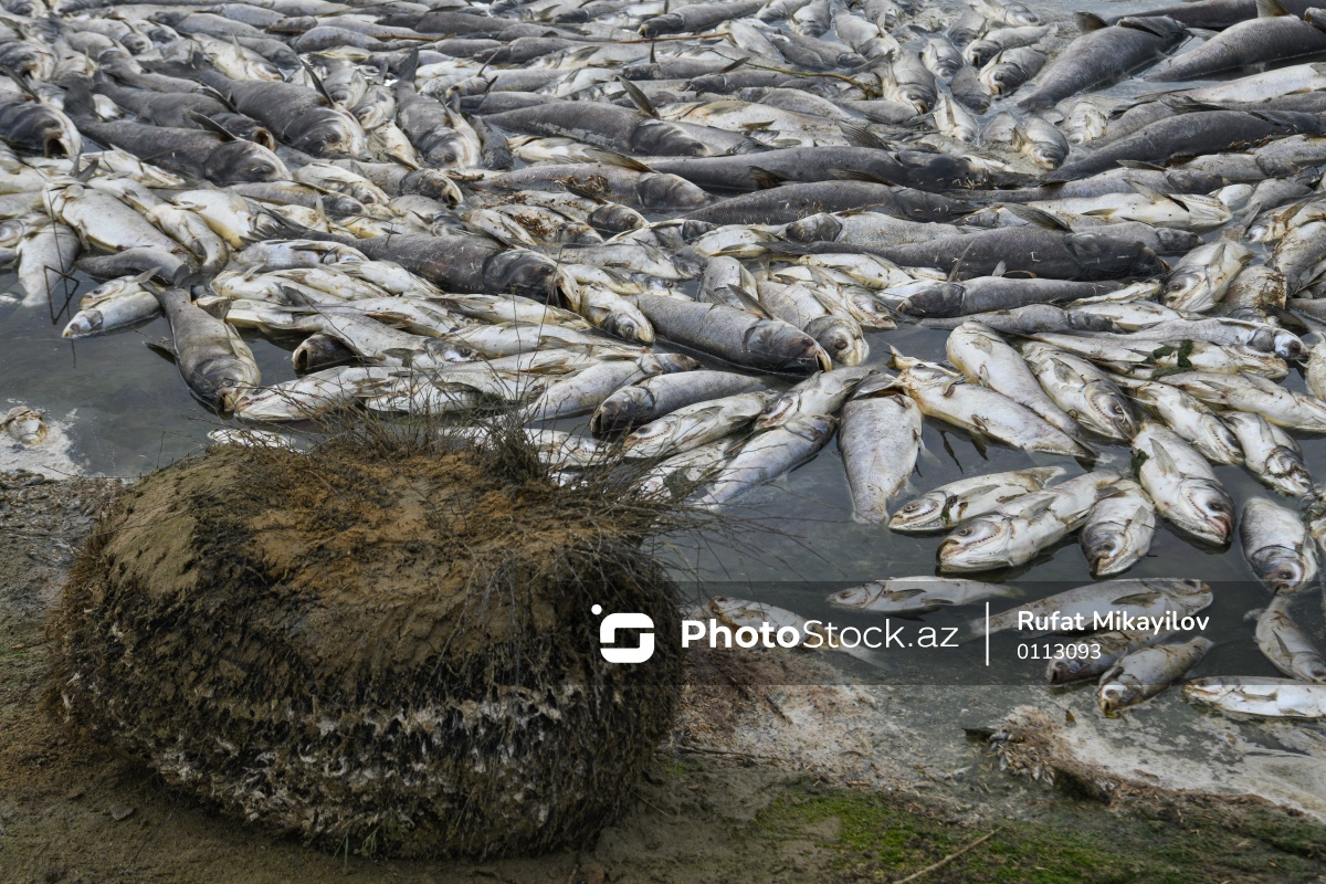 Abşeron rayonu Məhəmmədi kəndində yerləşən göldə balıqlar tələf olub