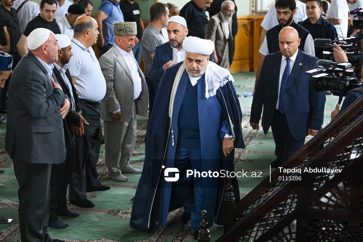 Qurban bayramı münasibəti ilə Təzəpir məscidində qılınan bayram namazında iştirak edən Qafqaz Müsəlmanları İdarəsinin sədri şeyxülislam Allahşükür Paşazadə.
