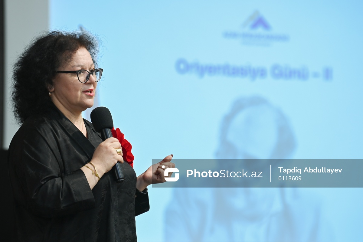 Azad Mirzəcanzadə İnkişaf Proqramının Oriyentasiya Günü II adlı tədbirdə iştirak edən Xarici Tələbələr Mərkəzinin rəhbəri Səbinə Əliyeva.