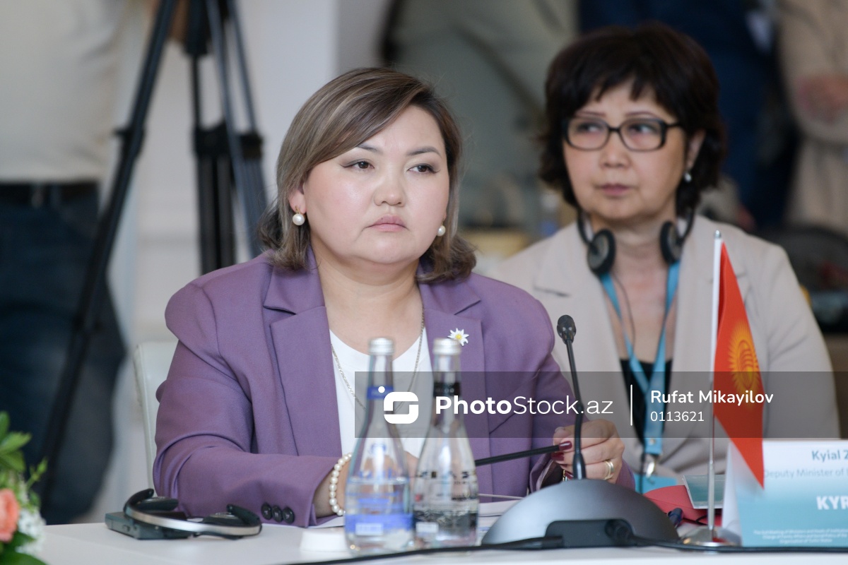 TDT-nin ailə məsələləri və sosial siyasət sahəsinə məsul nazirlərinin və qurum rəhbərlərinin 2-ci iclasında iştirak edən Qırğızıstan Respublikasının Əmək, Sosial Müdafiə və Miqrasiya nazirinin müavini Kyial Zhanuzakova.