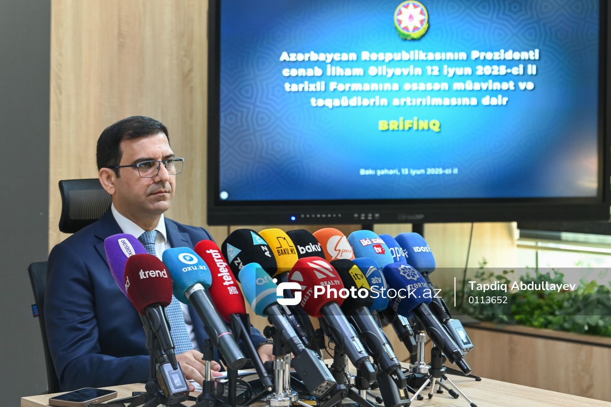 Rəşad Mustafayevin müavinət və təqaüdlərin artırılması ilə bağlı keçirdiyi brifinq