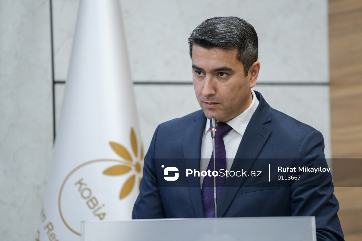 6-cı "Yerli şirkətlərin tanıtım sərgisi"nə həsr olunmuş mətbuat konfransında iştirak edən Kiçik və Orta Biznesin İnkişafı Agentliyinin baş mütəxəssisi Çingiz Hüseynov.