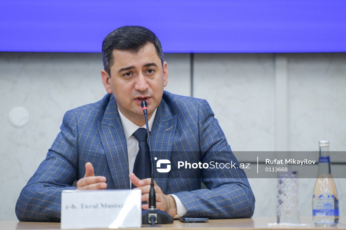 6-cı "Yerli şirkətlərin tanıtım sərgisi"nə həsr olunmuş mətbuat konfransında iştirak edən “Marsol Group”un təsisçisi Tural Mustafayev.