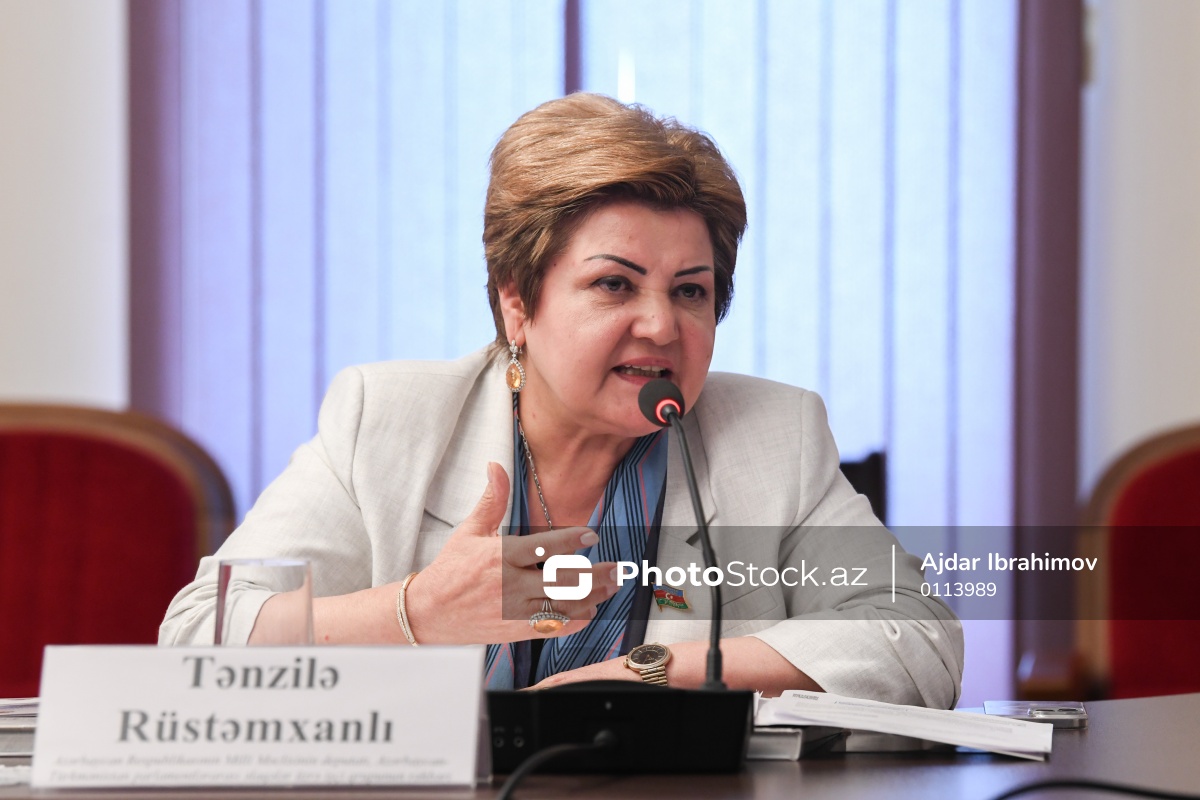 “Azərbaycan Respublikası ilə Türkmənistan Respublikası arasında çoxşaxəli əməkdaşlıq: nailiyyətlər və perspektivlər” mövzusunda tədbirdə iştirak edən Azərbaycan Respublikası Milli Məclisinin deputatı Tənzilə Rüstəmxanlı.