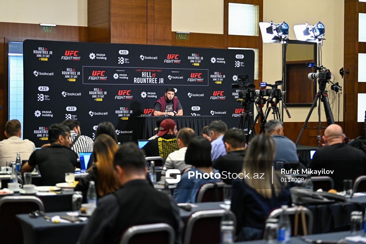 İyunun 18-də Bakıda keçiriləcək Mütləq Döyüş Çempionatı (UFC) iştirakçılarının mətbuat konfransı baş tutub. Mətbuat konfransında braziliyalı idmançı Nikolas Motta, rusiyalı MMA döyüşçüsü Rizvan Kuniev, ABŞ-dən olan idmançı Xalil Ruantri, avstriyalı MMA döyüşçüsü Boqdan Qrad, Azərbaycanın MMA döyüşçüsü Tofiq Musayev, çilili MMA döyüşçüsü İqnasio Bahamondes, azərbaycanlı MMA döyüşçüsü Nazim Sadıxov, Qırğızıstandan olan MMA döyüşçüsü Mıktıbek Orolbai, ABŞ-dən olan MMA döyüşçüsü Kurtis Blaydes, Azərbaycanın MMA döyüşçüsü Rafael Fiziyev, ABŞ-dən olan MMA döyüşçüsü Camal Hill, tacikistanlı MMA döyüşçüsü Məhəmməd Nayimov iştirak ediblər. Onlar Mütləq Döyüş Çempionatının (UFC) Bakıda keçiriləcək turniri ilə bağlı ilkin təəssüratlarını bölüşüblər.