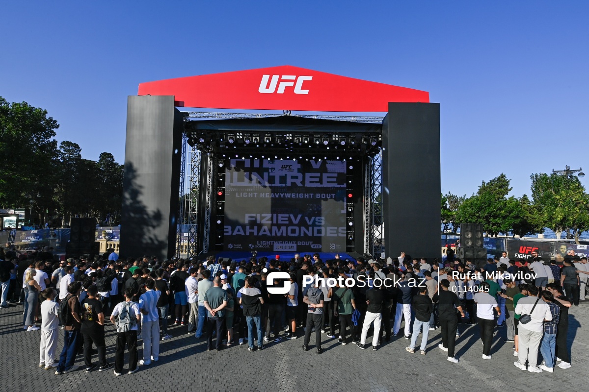 Dənizkənarı Milli Parkda (Azərbaycan Dövlət Kukla Teatrının arxasında) UFC döyüşçüləri azarkeşlərin qarşısında açıq məşq keçiriblər. Məşq zamanı azarkeşlər Rafael Fiziev, Xalil Rauntri, Nazim Sadıxov, Camal Hill və Tofiq Musayevlə birbaşa görüş imkanı əldə ediblər. Tədbir çərçivəsində döyüşçülər çıxış edərək azarkeşlərin suallarını cavablandırıb, foto çəkdirib və canlı nümayişlərlə öz bacarıqlarını göstəriblər.