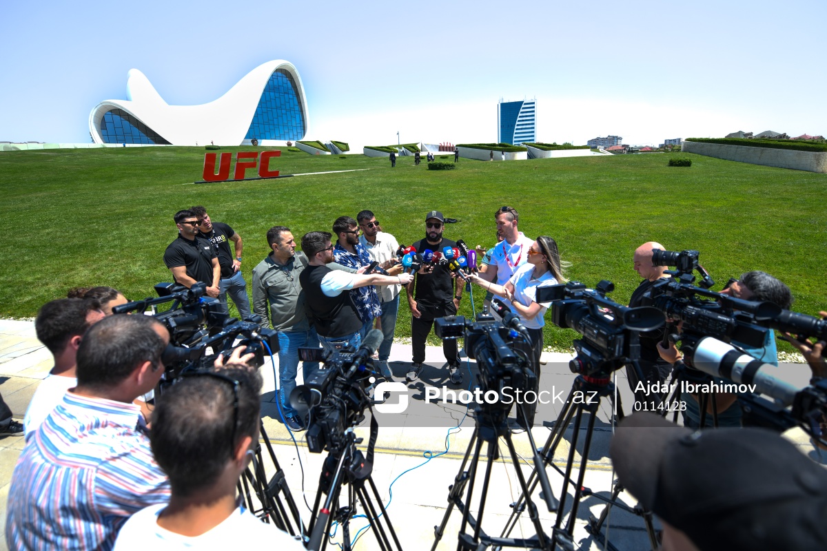 İyunun 19-da Heydər Əliyev Mərkəzinin qarşısında "Bakı Fight Night" gecəsinin ulduz qonaqları Belal Muhammad və Merab Dvalışvili ilə media brifinq keçirilib. Bakıda keçiriləcək turnir üçün Azərbaycana gələn məşhur MMA döyüşçüsü Belal Məhəmməd bildirib ki, buraya ilk dəfədir gəlir və Mütləq Döyüş Çempionatı (UFC) turnirinin Bakıda keçirilməsi Azərbaycan üçün böyük hadisədir. O həmçinin turnirdə Azərbaycan təmsilçisi Rafael Fiziyevin rəqibi olan çilili İqnasio Bahamondesi dəstəkləyəcəyini söyləyib. Bununla yanaşı, turnir üçün ölkəmizə gələn digər məşhur MMA döyüşçüsü Merab Dvalışvili də bildirib ki, Mütləq Döyüş Çempionatının (UFC) Bakıda keçiriləcək turnirində hər şey yüksək səviyyədə təşkil olunub. Məşhur döyüşçü Azərbaycan təmsilçisi Nazim Sadıxov haqqında da danışıb. O bildirib ki, Nazim Sadıxovla dostdur və ABŞ-də birlikdə məşqlər ediblər. Merab Dvalışvili UFC turniri üçün sürpriz hazırladıqlarını da söyləyib.