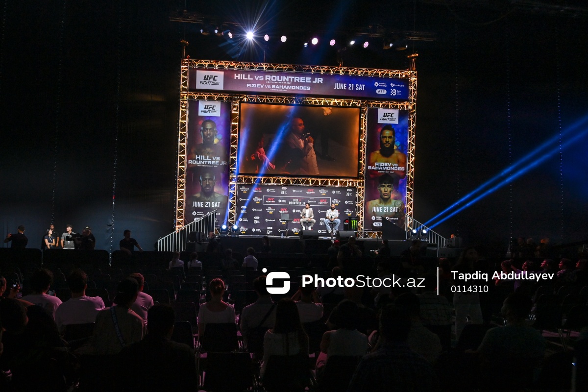 Mütləq Döyüş Çempionatının (UFC) Azərbaycanda keçiriləcək turniri üçün Bakıda səfərdə olan tanınmış MMA idmançıları Merab Dvalışvilii və Belal Məhəmməd azarkeşlərlə görüşüblər. Tədbir yarışın keçiriləcəyi Bakı Kristal Zalında baş tutub. Gürcüstandan və ABŞ-dən olan döyüşçülər fanatların suallarını cavablandırıblar.