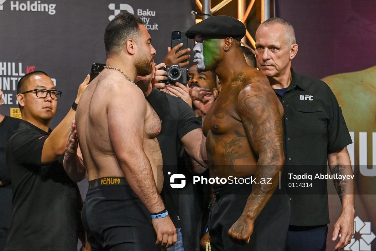 Mütləq Döyüş Çempionatının (UFC) Azərbaycanda keçiriləcək turnirindən əvvəl MMA idmançıları rəqibləri ilə üz-üzə gəliblər. Tədbir yarışın keçiriləcəyi Bakı Kristal Zalında baş tutub. Bundan əlavə, idmançılar son olaraq çəkidən də keçiblər.