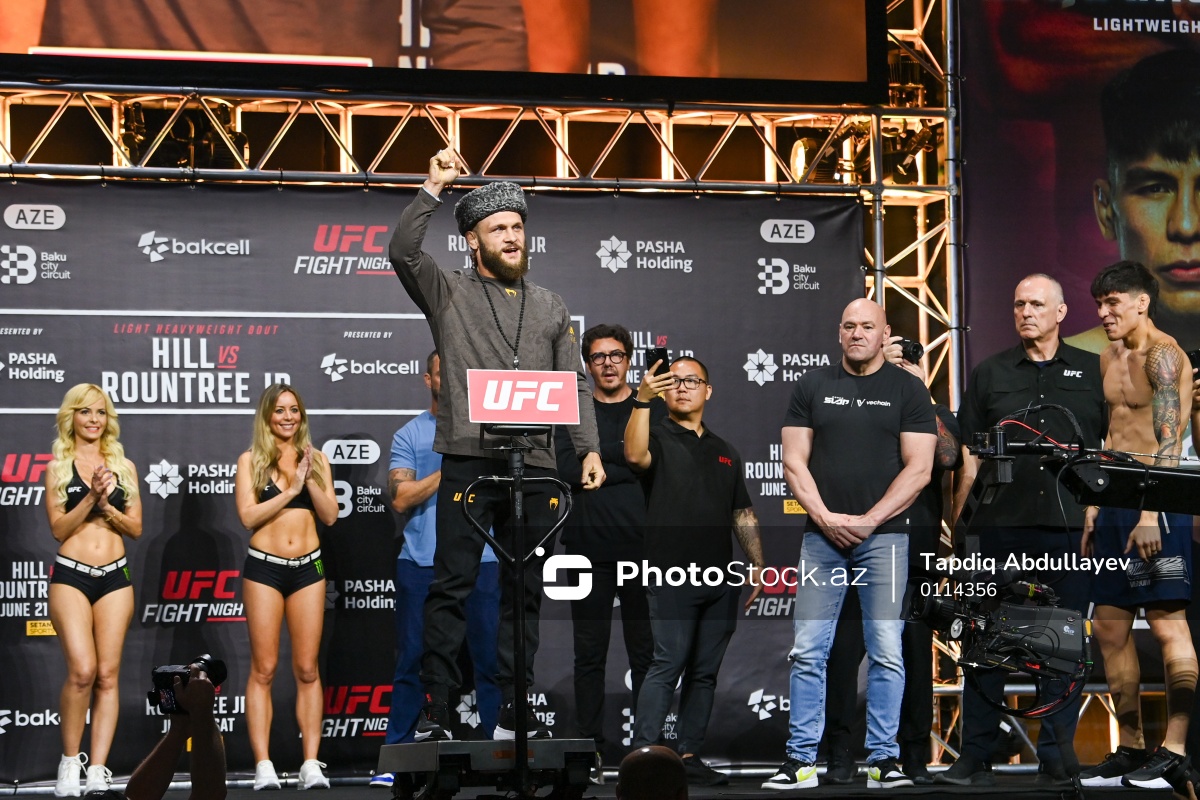 Mütləq Döyüş Çempionatının (UFC) Azərbaycanda keçiriləcək turnirindən əvvəl MMA idmançıları rəqibləri ilə üz-üzə gəliblər. Tədbir yarışın keçiriləcəyi Bakı Kristal Zalında baş tutub. Bundan əlavə, idmançılar son olaraq çəkidən də keçiblər.