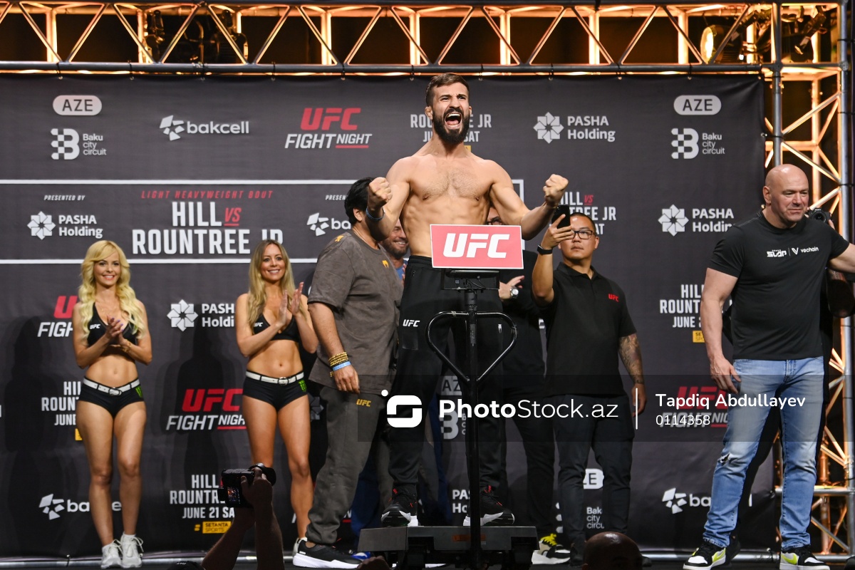 Mütləq Döyüş Çempionatının (UFC) Azərbaycanda keçiriləcək turnirindən əvvəl MMA idmançıları rəqibləri ilə üz-üzə gəliblər. Tədbir yarışın keçiriləcəyi Bakı Kristal Zalında baş tutub. Bundan əlavə, idmançılar son olaraq çəkidən də keçiblər.