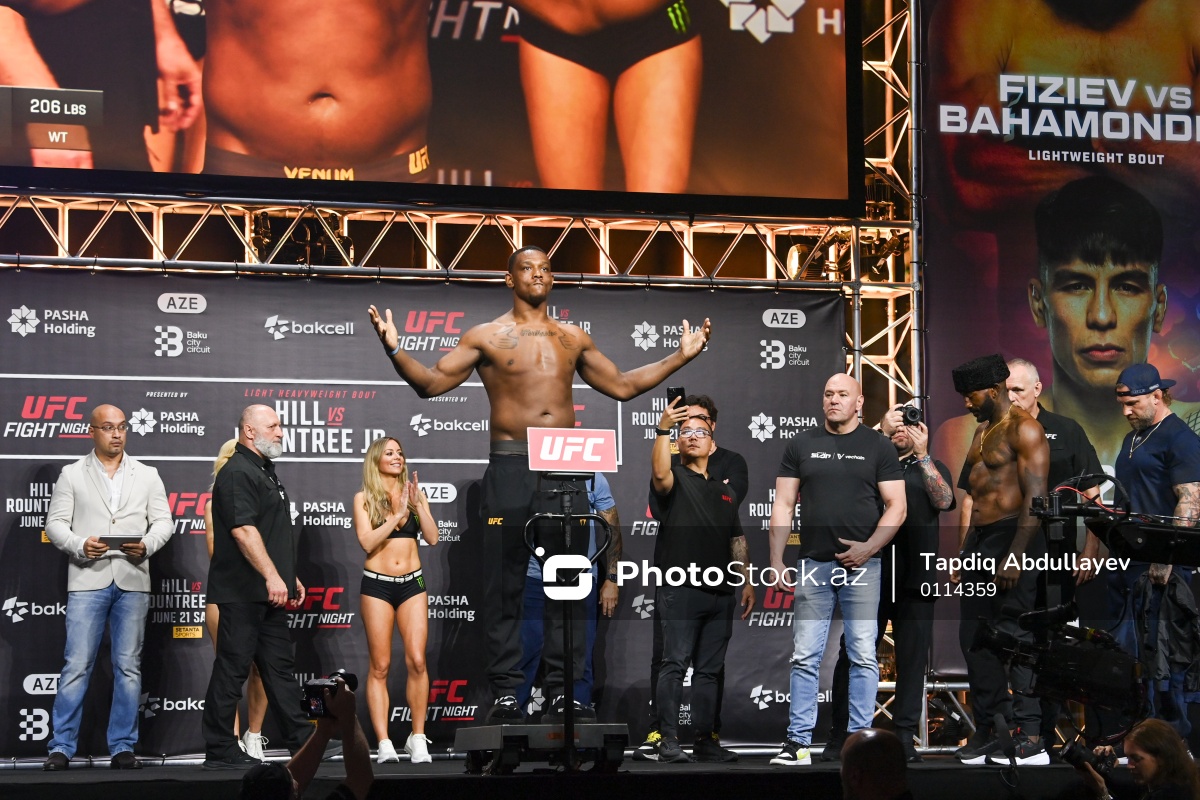 Mütləq Döyüş Çempionatının (UFC) Azərbaycanda keçiriləcək turnirindən əvvəl MMA idmançıları rəqibləri ilə üz-üzə gəliblər. Tədbir yarışın keçiriləcəyi Bakı Kristal Zalında baş tutub. Bundan əlavə, idmançılar son olaraq çəkidən də keçiblər.