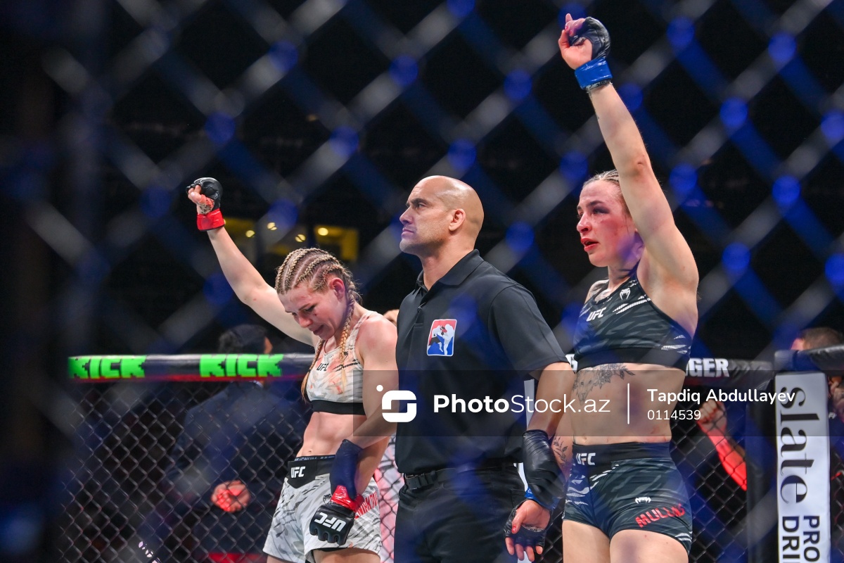Mütləq Döyüş Çempionatının (UFC) Bakıda təşkil olunan turnirində daha bir görüş keçirilib. “UFC Fight Night”ın dördüncü qarşılaşmasında Melissa Mallins (İngiltərə) Darya Jeleznyakova (Rusiya) ilə üz-üzə gəlib. Yarım yüngül çəkidə baş tutan duel 3 raund davam edib və yekunda Rusiya təmsilçisi qalib gəlib.