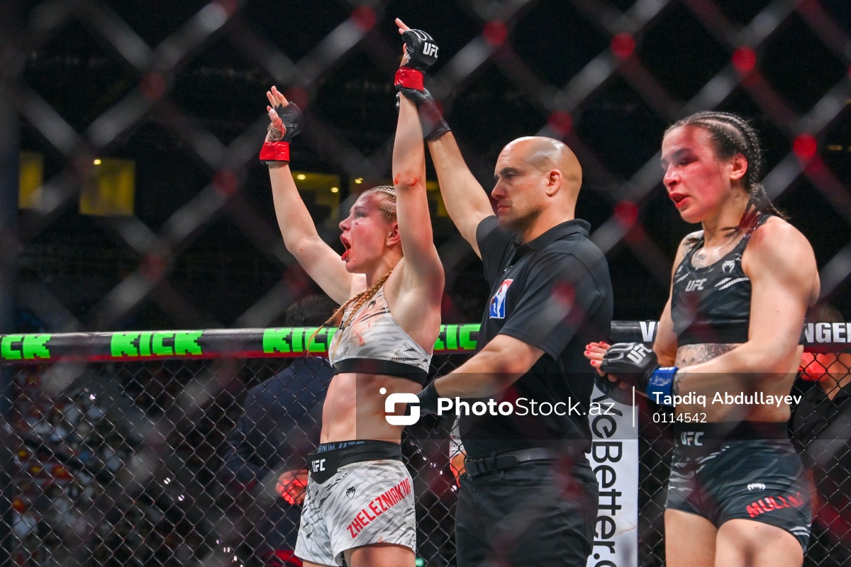Mütləq Döyüş Çempionatının (UFC) Bakıda təşkil olunan turnirində daha bir görüş keçirilib. “UFC Fight Night”ın dördüncü qarşılaşmasında Melissa Mallins (İngiltərə) Darya Jeleznyakova (Rusiya) ilə üz-üzə gəlib. Yarım yüngül çəkidə baş tutan duel 3 raund davam edib və yekunda Rusiya təmsilçisi qalib gəlib.