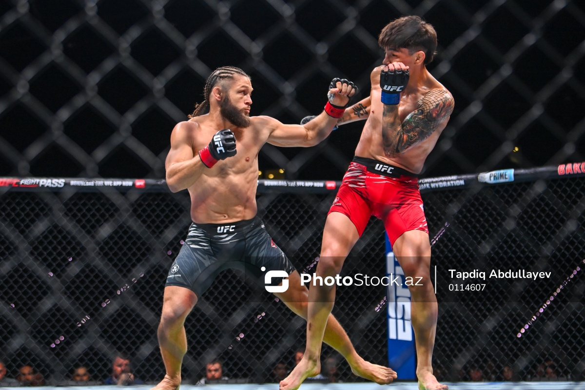 Bakıda ilk dəfə keçirilən “UFC Fight Night”da iştirak edən azərbaycanlı UFC döyüşçüsü Rafael Fiziyev (sol), çilili UFC döyüşçüsü İqnasio Bahamondes (sağ).