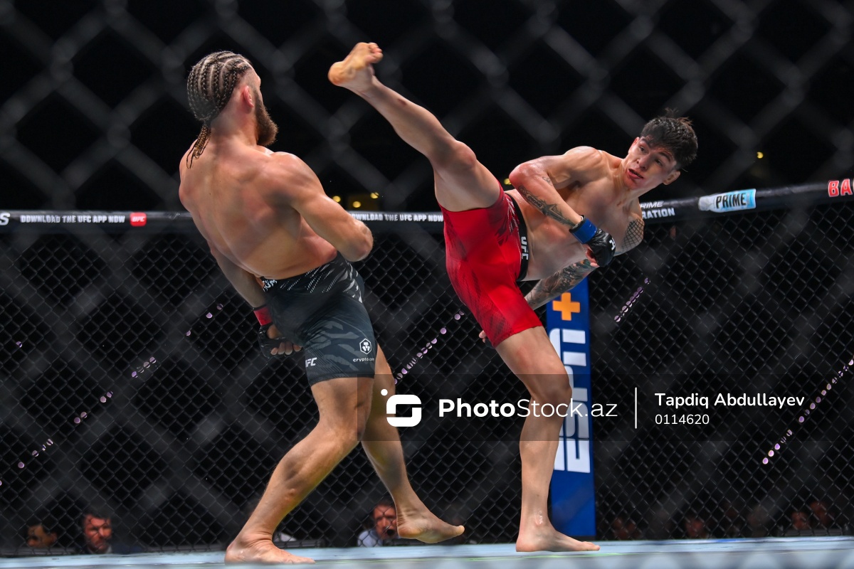 Bakıda ilk dəfə keçirilən “UFC Fight Night”da iştirak edən azərbaycanlı UFC döyüşçüsü Rafael Fiziyev (sol), çilili UFC döyüşçüsü İqnasio Bahamondes (sağ).