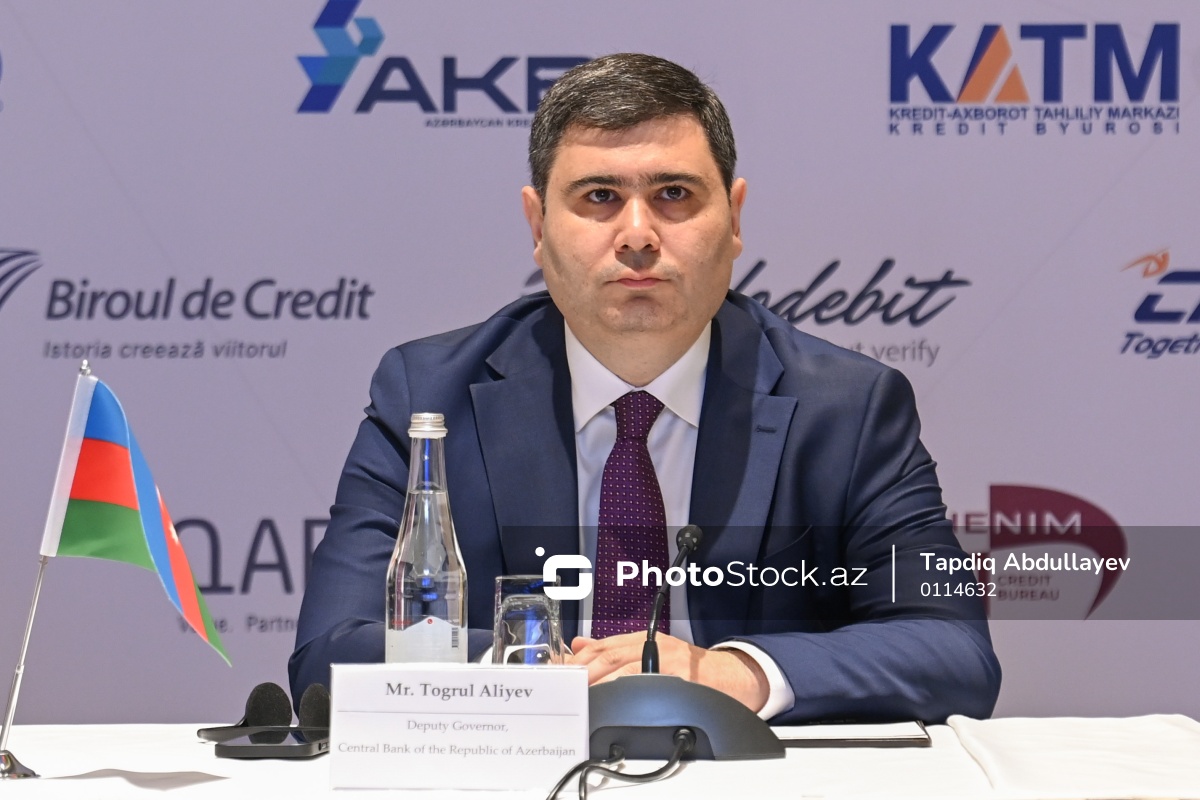 Bakıda keçirilən I Beynəlxalq Kredit Hesabatlılığı Konfransında iştirak edən Azərbaycan Mərkəzi Bankının (AMB) sədr müavini Toğrul Əliyev.