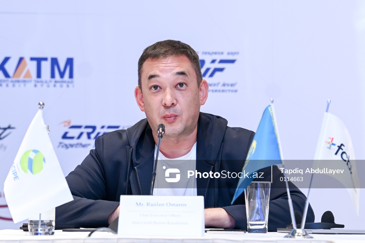 Bakıda keçirilən I Beynəlxalq Kredit Hesabatlılığı Konfransında iştirak edən ACIP İdarə Heyətinin sədri, Qazaxıstana məxsus "First Credit Bureau"nun (FCBK) rəhbəri Ruslan Omarov.