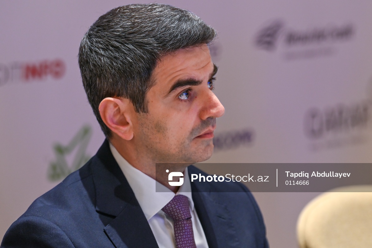 Bakıda keçirilən I Beynəlxalq Kredit Hesabatlılığı Konfransında iştirak edən "Unibank"ın İdarə Heyətinin sədri Fərid Abuşov.