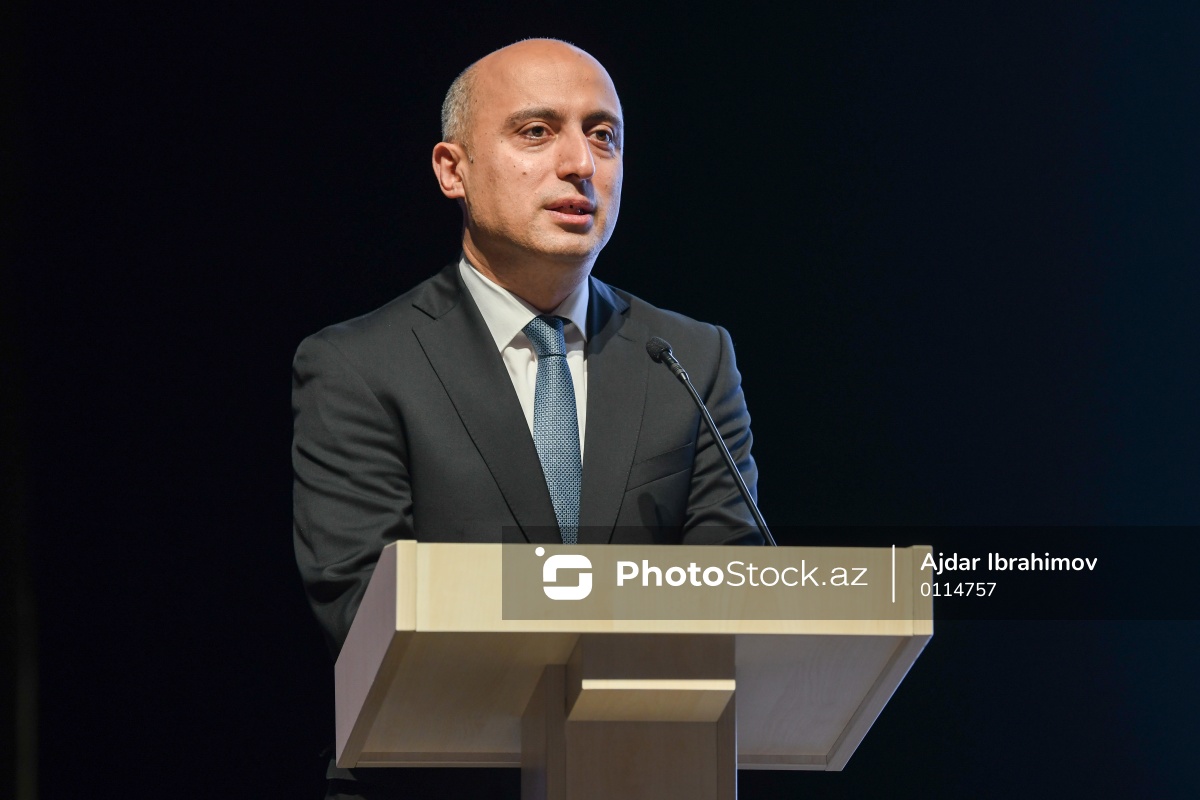 Respublika Fənn Olimpiadalarının mükafatlandırma mərasimində iştirak edən Azərbaycan Respublikasının elm və təhsil naziri Emin Əmrullayev.