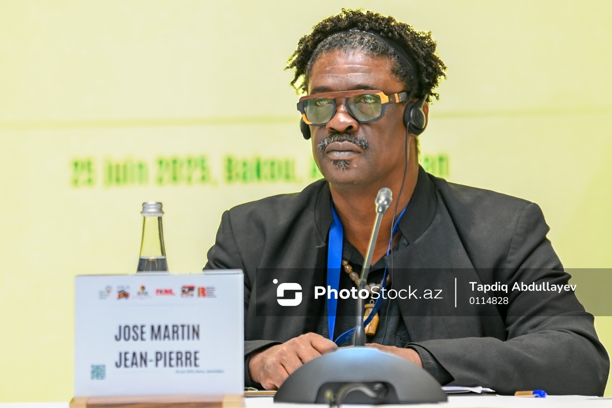"Qvadelupun dekolonizasiyasına doğru! Çağırışlar və perspektivlər" adlı konfransda iştirak edən Qvadelupun Dekolonizasiyası üzrə Beynəlxalq Cəbhənin katibi Joze Marten Jan-Pyer.