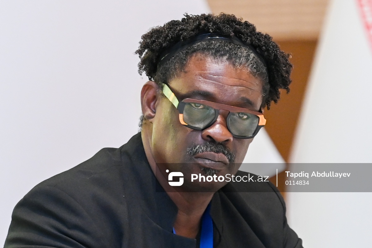 "Qvadelupun dekolonizasiyasına doğru! Çağırışlar və perspektivlər" adlı konfransda iştirak edən Qvadelupun Dekolonizasiyası üzrə Beynəlxalq Cəbhənin katibi Joze Marten Jan-Pyer.