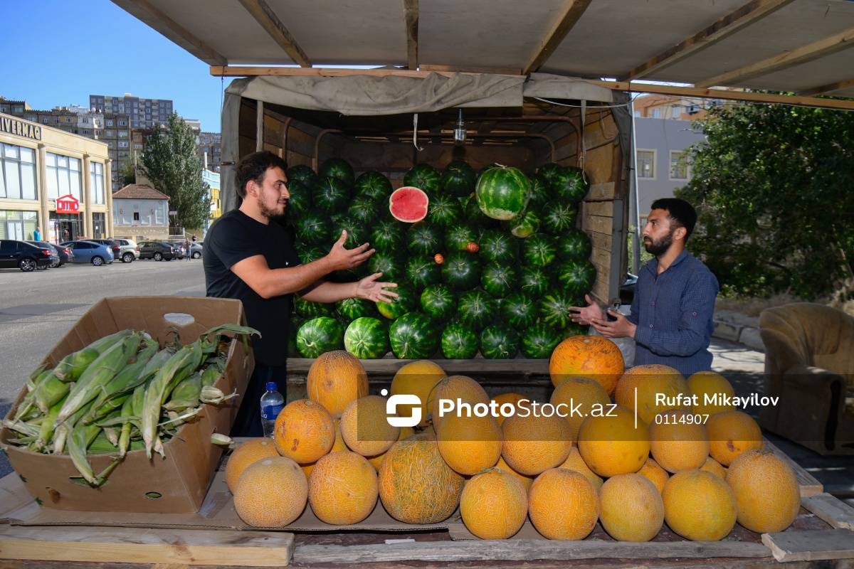 Yol kənarlarında qarpız və yemişin pərakəndə satışı