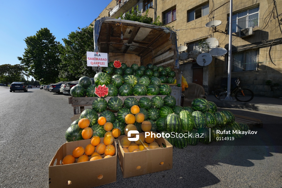 Yol kənarlarında qarpız və yemişin pərakəndə satışı