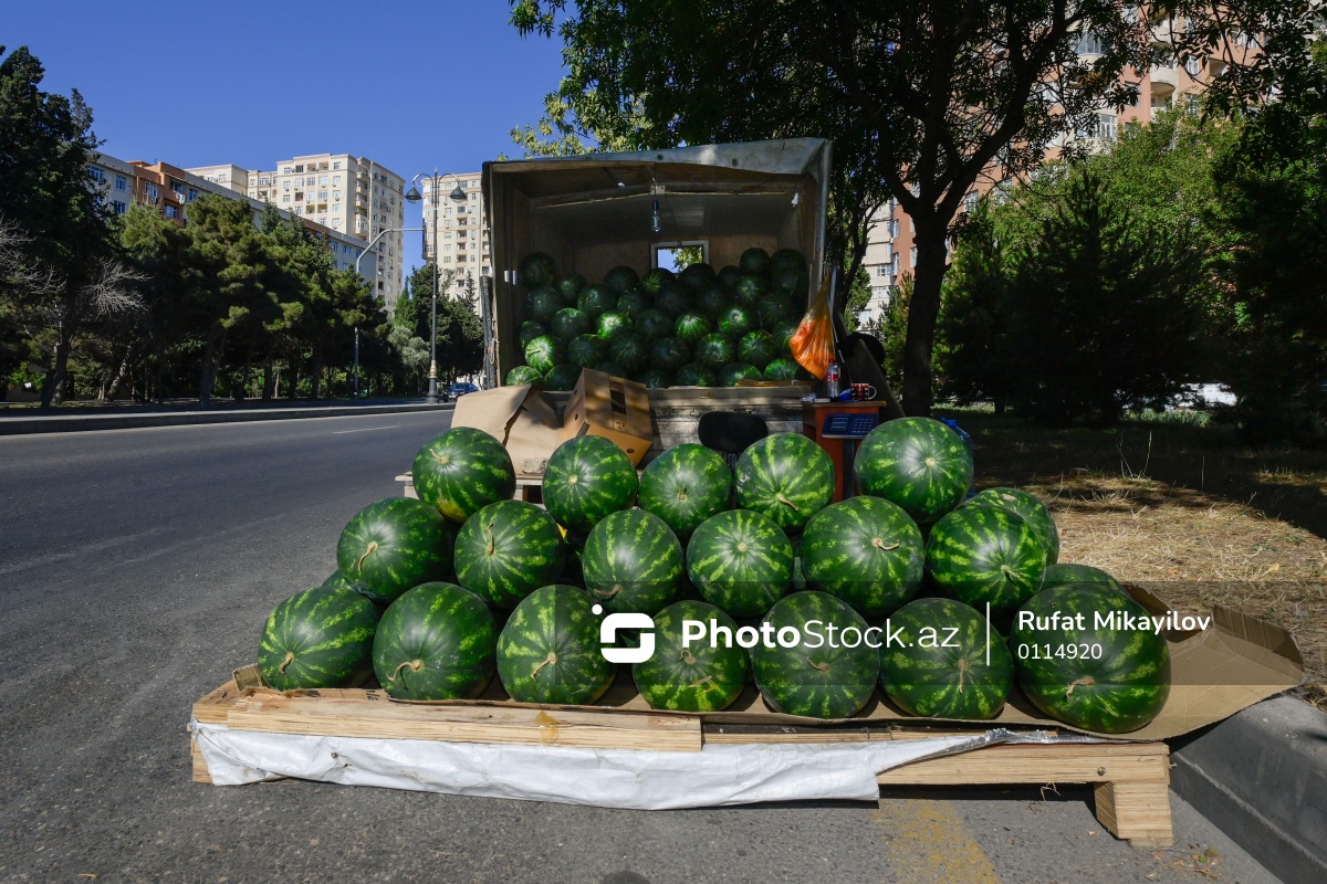 Yol kənarlarında qarpız və yemişin pərakəndə satışı
