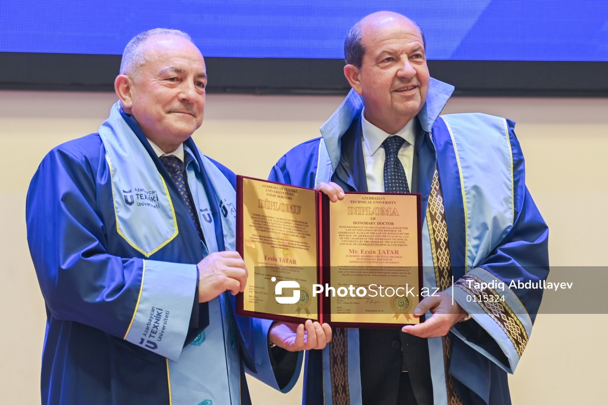 Şimali Kipr Türk Respublikasının Prezidenti Ersin Tatara Azərbaycan Texniki Universitetində Fəxri Doktor Diplomunun təqdim edilməsi mərasimi keçirilib. Mərasimdə Şimali Kipr Türk Respublikasının Prezidenti Ersin Tatar, Azərbaycan Texniki Universitetinin rektoru Vilayət Vəliyev və digər rəsmilər iştirak ediblər. Mərasimdə Şimalı Kipr Prezidentinə Fəxri mantiya və Fəxri Doktor Diplomu təqdim edilib.