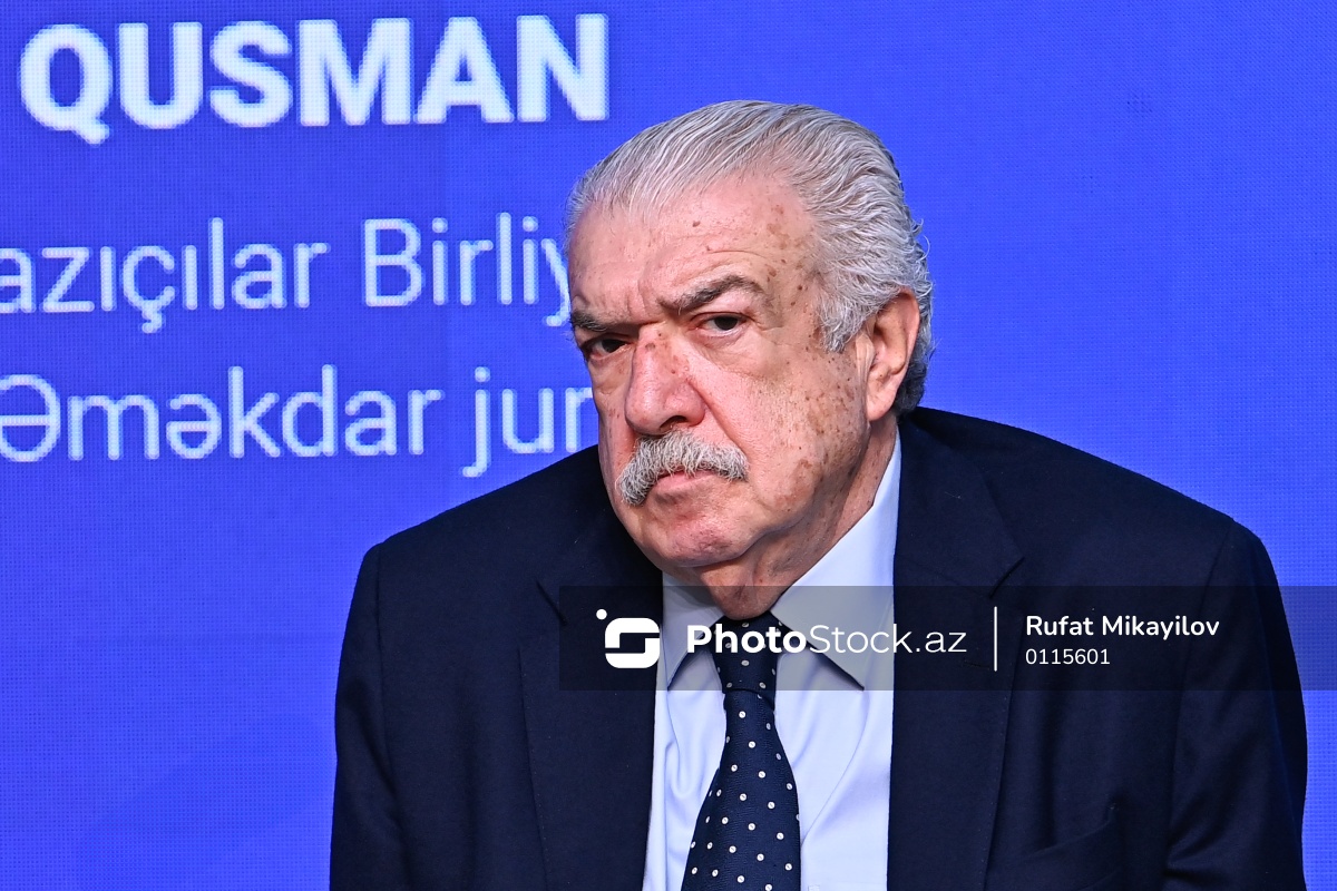 “Medianın inkişafında Ümummilli Lider Heydər Əliyevin rolu” mövzusunda konfransın panel sessiyasında iştirak edən Azərbaycan Yazıçılar Birliyinin üzvü, Rusiyanın Əməkdar jurnalisti Mixail Qusman.