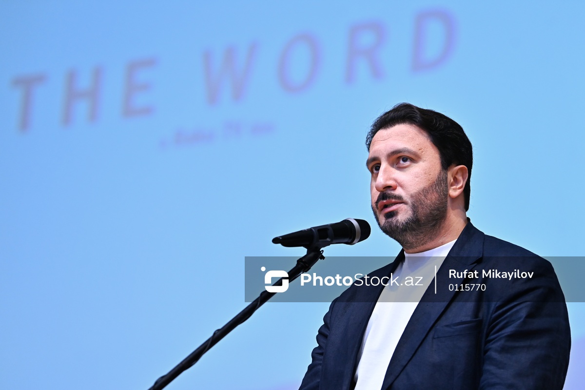 “Söz” sənədli filminin təqdimat mərasimində çıxış edən “Baku” TV-nin direktoru Ramin Cəfərov.