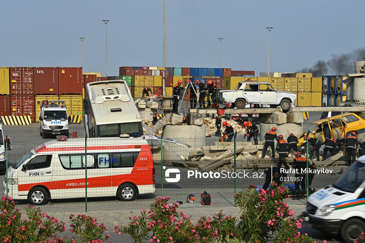 Fövqəladə Hallar Nazirliyinin təşkilatçılığı ilə Bakı şəhəri, Qaradağ rayonunun Ələt qəsəbəsində Bakı Beynəlxalq Dəniz Limanının ərazisində "Fövqəladə halların qarşısının alınması və nəticələrinin aradan qaldırılması sahəsində dövlət orqanları ilə qarşılıqlı fəaliyyətin təşkili" mövzusunda "Bakı 2025" əməliyyat-taktiki təlimi keçirilib. Təlimi fövqəladə hallar naziri, general-polkovnik Kəmaləddin Heydərov, Beynəlxalq Mülki Müdafiə Təşkilatına üzv ölkələrin fövqəladə hallarla mübarizə üzrə məsul qurumlarının rəhbər şəxsləri, Müdafiə Nazirliyi, Daxili İşlər Nazirliyi, Rəqəmsal İnkişaf və Nəqliyyat Nazirliyi, Strateji Obyektlərin Mühafizəsi Dövlət Agentliyi, Dövlət Ehtiyatları Agentliyi, ANAMA, TƏBİB, AZCON, SOCAR, bp, FHN yanında İctimai Şura və digər qurumların rəhbər vəzifəli şəxsləri izləyiblər. Təlim irimiqyaslı fövqəladə hallar zamanı xilasetmə qüvvə və vasitələrinin birgə fəaliyyət mexanizminin həyata keçirilməsi, real imkanlarının müəyyən edilməsi, idarəetmə sisteminin təkmilləşdirilməsi və bununla bağlı qərargahların əməliyyat hazırlığının yüksəldilməsi, qəza-xilasetmə və digər təxirəsalınmaz işlərin aparılması, qarşılıqlı fəaliyyət və hərtərəfli təminatın təşkili məqsədilə keçirilib. Qeyd edək ki, təlimdə Fövqəladə Hallar Nazirliyi ilə yanaşı Müdafiə, Daxili İşlər, Rəqəmsal İnkişaf və Nəqliyyat nazirlikləri, Strateji Obyektlərin Mühafizəsi Dövlət Agentliyi, Dövlət Ehtiyatları Agentliyi, ANAMA, TƏBİB, AZCON, SOCAR və bp-nin ümumilikdə 1 250 nəfərdən ibarət canlı qüvvəsi, 8 ədəd helikopteri, 277 ədəd xüsusi təyinatlı texnikası və 14 baş xüsusi təlim görmüş iti iştirak edib.