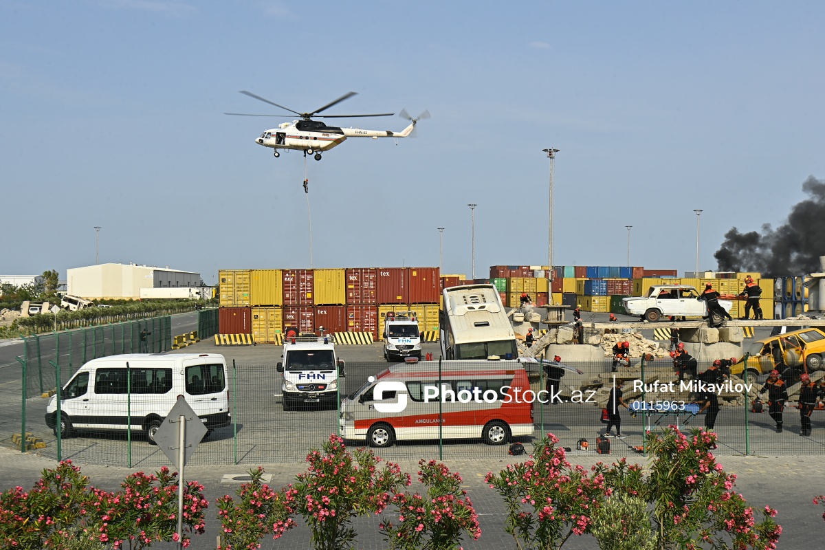 Fövqəladə Hallar Nazirliyinin təşkilatçılığı ilə Bakı şəhəri, Qaradağ rayonunun Ələt qəsəbəsində Bakı Beynəlxalq Dəniz Limanının ərazisində "Fövqəladə halların qarşısının alınması və nəticələrinin aradan qaldırılması sahəsində dövlət orqanları ilə qarşılıqlı fəaliyyətin təşkili" mövzusunda "Bakı 2025" əməliyyat-taktiki təlimi keçirilib. Təlimi fövqəladə hallar naziri, general-polkovnik Kəmaləddin Heydərov, Beynəlxalq Mülki Müdafiə Təşkilatına üzv ölkələrin fövqəladə hallarla mübarizə üzrə məsul qurumlarının rəhbər şəxsləri, Müdafiə Nazirliyi, Daxili İşlər Nazirliyi, Rəqəmsal İnkişaf və Nəqliyyat Nazirliyi, Strateji Obyektlərin Mühafizəsi Dövlət Agentliyi, Dövlət Ehtiyatları Agentliyi, ANAMA, TƏBİB, AZCON, SOCAR, bp, FHN yanında İctimai Şura və digər qurumların rəhbər vəzifəli şəxsləri izləyiblər. Təlim irimiqyaslı fövqəladə hallar zamanı xilasetmə qüvvə və vasitələrinin birgə fəaliyyət mexanizminin həyata keçirilməsi, real imkanlarının müəyyən edilməsi, idarəetmə sisteminin təkmilləşdirilməsi və bununla bağlı qərargahların əməliyyat hazırlığının yüksəldilməsi, qəza-xilasetmə və digər təxirəsalınmaz işlərin aparılması, qarşılıqlı fəaliyyət və hərtərəfli təminatın təşkili məqsədilə keçirilib. Qeyd edək ki, təlimdə Fövqəladə Hallar Nazirliyi ilə yanaşı Müdafiə, Daxili İşlər, Rəqəmsal İnkişaf və Nəqliyyat nazirlikləri, Strateji Obyektlərin Mühafizəsi Dövlət Agentliyi, Dövlət Ehtiyatları Agentliyi, ANAMA, TƏBİB, AZCON, SOCAR və bp-nin ümumilikdə 1 250 nəfərdən ibarət canlı qüvvəsi, 8 ədəd helikopteri, 277 ədəd xüsusi təyinatlı texnikası və 14 baş xüsusi təlim görmüş iti iştirak edib.