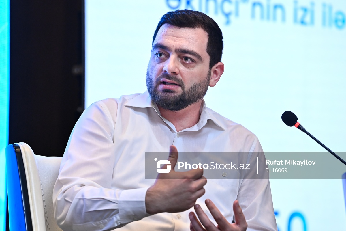 "Gələcəyin mediası: "Əkinçi"nin izi ilə" mövzusunda keçirilən forum çərçivəsində "Gələcəyin mediasına baxış: jurnalistika gələcəyin peşəsi kimi" mövzusunda panel sessiyada çıxış edən Oxu.Az-ın baş redaktoru Ülvi Səfərov.
