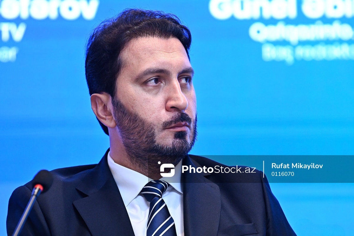 "Gələcəyin mediası: "Əkinçi"nin izi ilə" mövzusunda keçirilən forum çərçivəsində "Gələcəyin mediasına baxış: jurnalistika gələcəyin peşəsi kimi" mövzusunda panel sessiyada iştirak edən "BAKU" TV-nin rəhbəri Ramin Cəfərov.