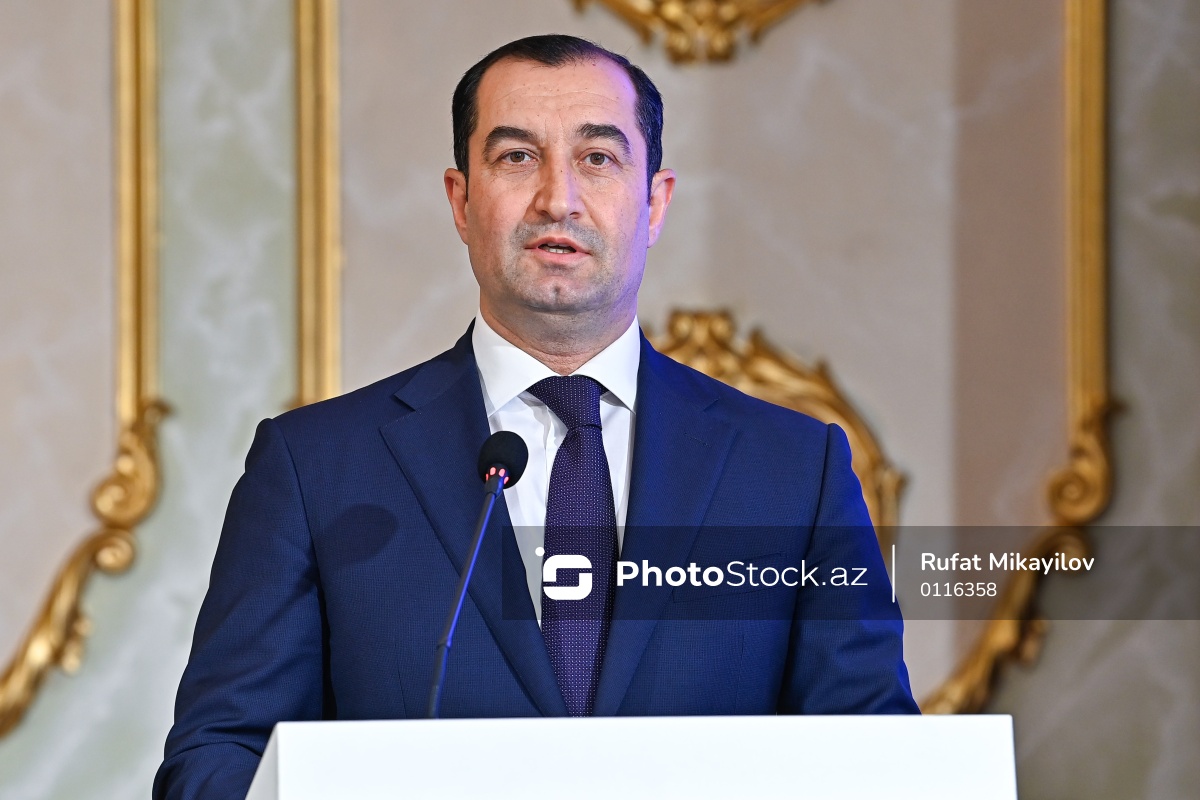 Şamaxıda “Müasir informasiya məkanı və dini etiqad azadlığı” mövzusunda keçirilən konfransda çıxış edən Şamaxı Rayon İcra Hakimiyyətinin başçısı Tahir Məmmədov.