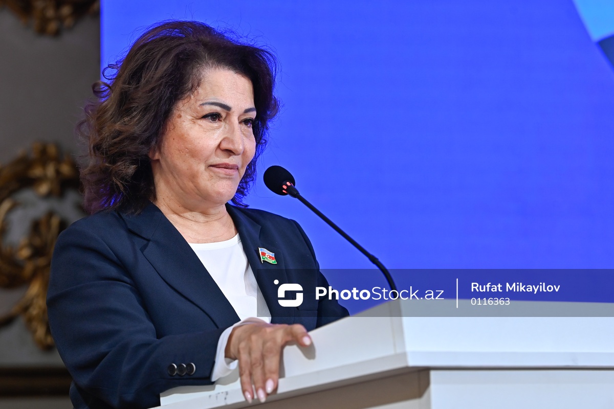 Şamaxıda “Müasir informasiya məkanı və dini etiqad azadlığı” mövzusunda keçirilən konfransda çıxış edən Milli Məclisin deputatı Tamam Cəfərova.