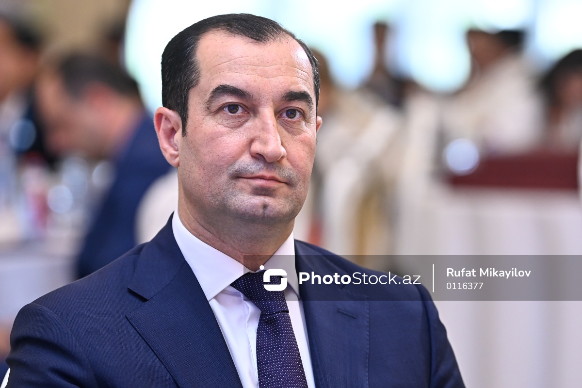 Şamaxıda “Müasir informasiya məkanı və dini etiqad azadlığı” mövzusunda keçirilən konfransda iştirak edən Şamaxı Rayon İcra Hakimiyyətinin başçısı Tahir Məmmədov.
