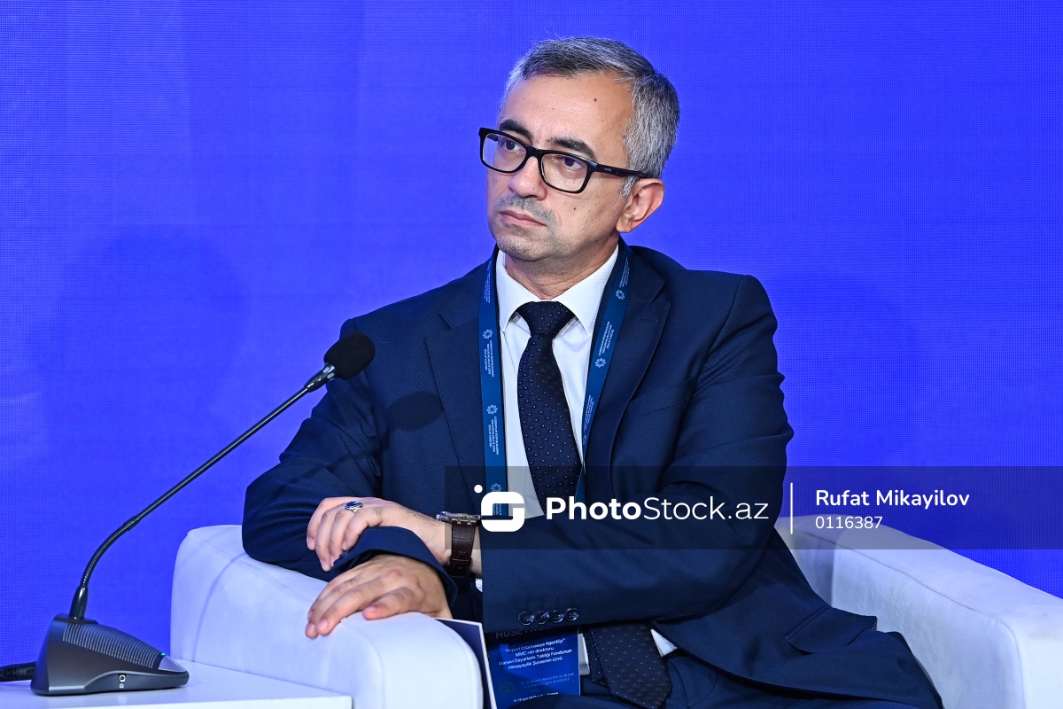 Şamaxıda “Müasir informasiya məkanı və dini etiqad azadlığı” mövzusunda keçirilən konfrans çərçivəsində “Din-media münasibətləri: yeni hədəf və çağırışlar” adlı panel sessiyada iştirak edən “Report İnformasiya Agentliyi” MMC-nin direktoru və Mənəvi Dəyərlərin Təbliği Fondunun Himayəçilik Şurasının üzvü Fuad Hüseynəliyev.