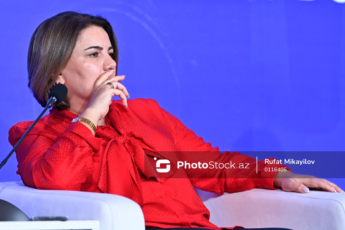Şamaxıda “Müasir informasiya məkanı və dini etiqad azadlığı” mövzusunda keçirilən konfrans çərçivəsində “Dini etiqadın sərbəst ifadəsi və söz azadlığı” adlı panel sessiyada iştirak edən "APA Media Group”un baş direktoru, Əməkdar jurnalist Vüsalə Mahirqızı.