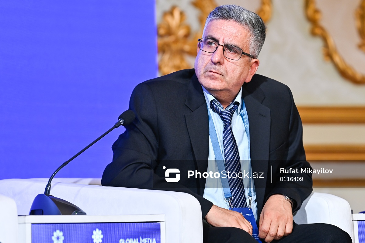 Şamaxıda “Müasir informasiya məkanı və dini etiqad azadlığı” mövzusunda keçirilən konfrans çərçivəsində “Dini etiqadın sərbəst ifadəsi və söz azadlığı” adlı panel sessiyada iştirak edən Azərbaycan İlahiyyat İnstitutunun müəllimi, "Amin" proqramının aparıcısı, fəlsəfə üzrə fəlsəfə doktoru Müşfiq Ötgün.