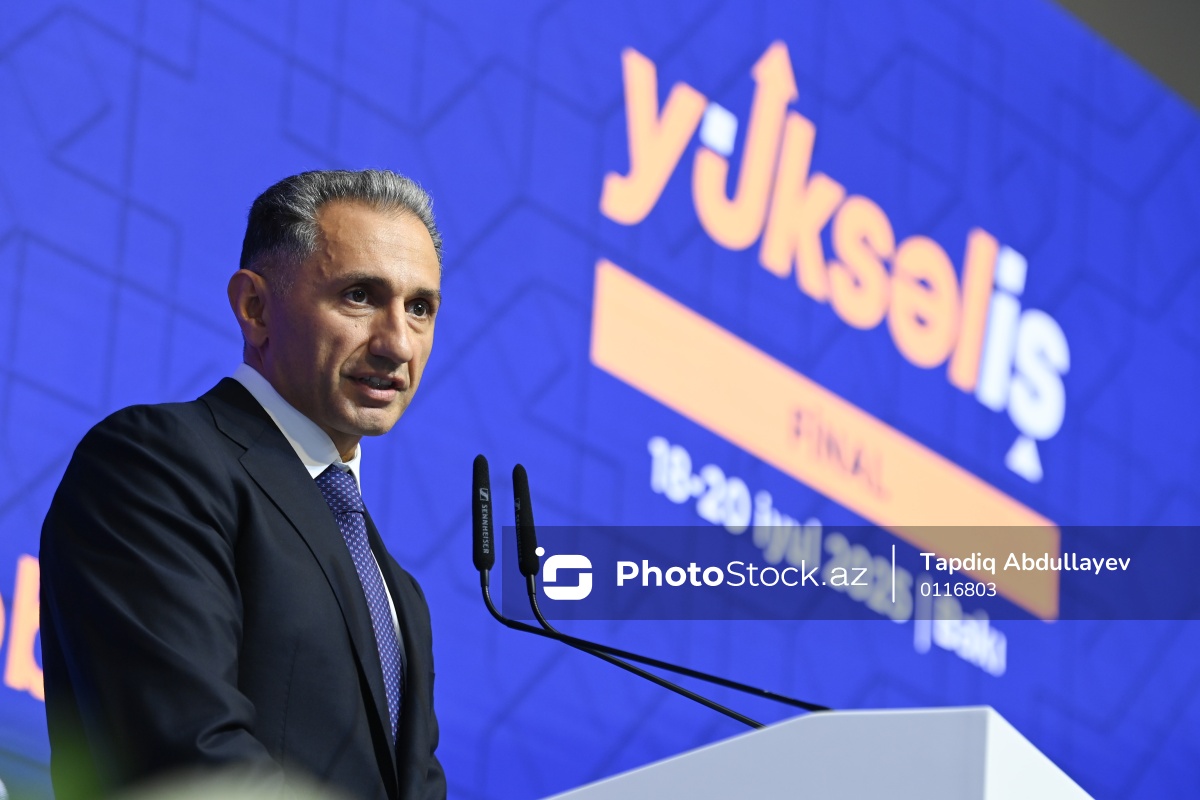 "Yüksəliş” müsabiqəsinin beşinci mövsümünün final mərhələsində çıxış edən Azərbaycan Respublikasının rəqəmsal inkişaf və nəqliyyat naziri Rəşad Nəbiyev.
