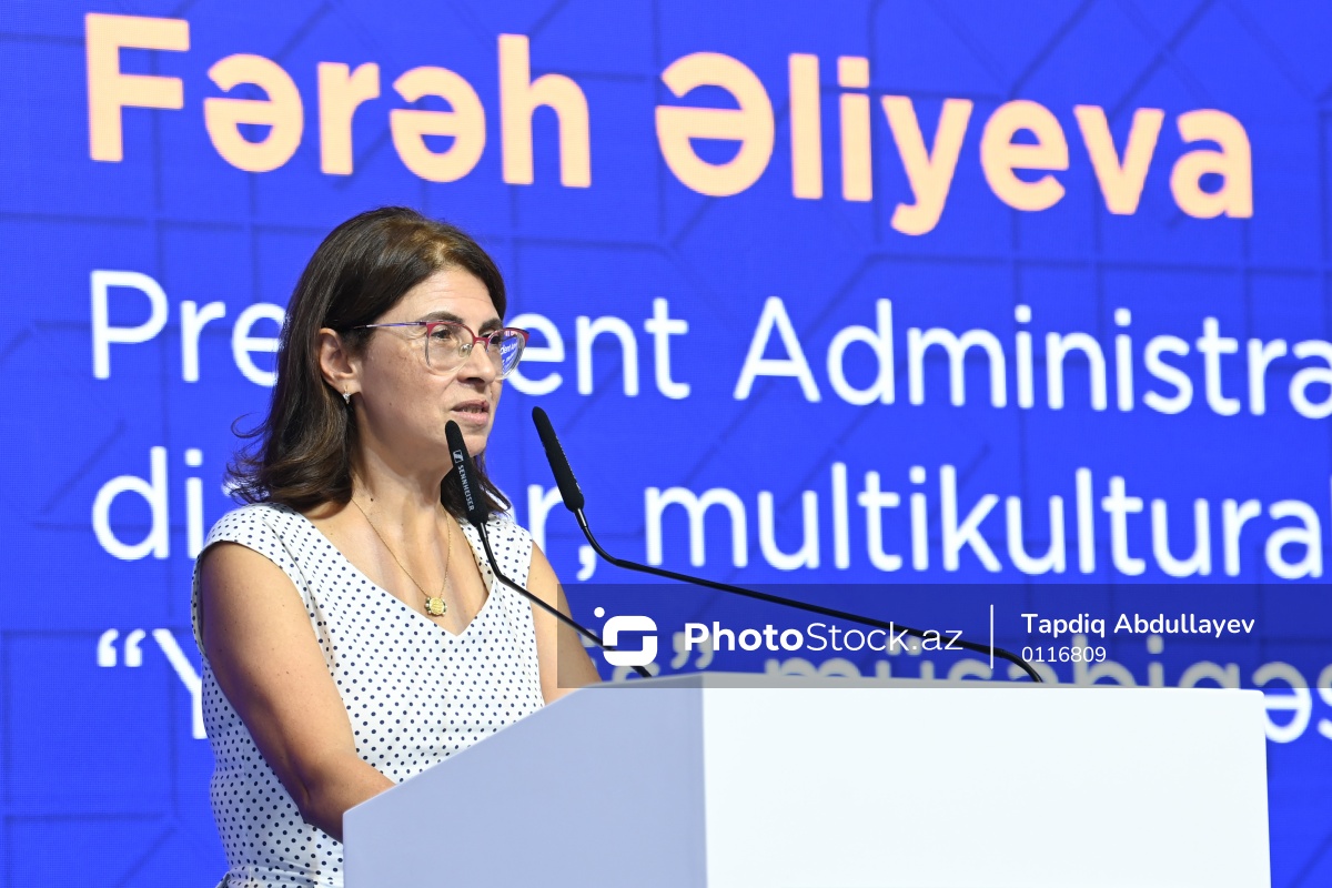 "Yüksəliş” müsabiqəsinin beşinci mövsümünün final mərhələsində çıxış edən Prezident Administrasiyasının Humanitar siyasət, diaspor, multikulturalizm və dini məsələlər şöbəsinin müdiri, "Yüksəliş" müsabiqəsinin Təşkilat Komitəsinin sədri Fərəh Əliyeva.