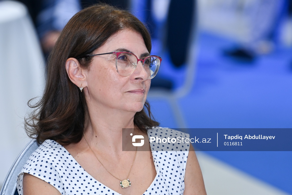 "Yüksəliş” müsabiqəsinin beşinci mövsümünün final mərhələsində iştirak edən Prezident Administrasiyasının Humanitar siyasət, diaspor, multikulturalizm və dini məsələlər şöbəsinin müdiri, "Yüksəliş" müsabiqəsinin Təşkilat Komitəsinin sədri Fərəh Əliyeva.