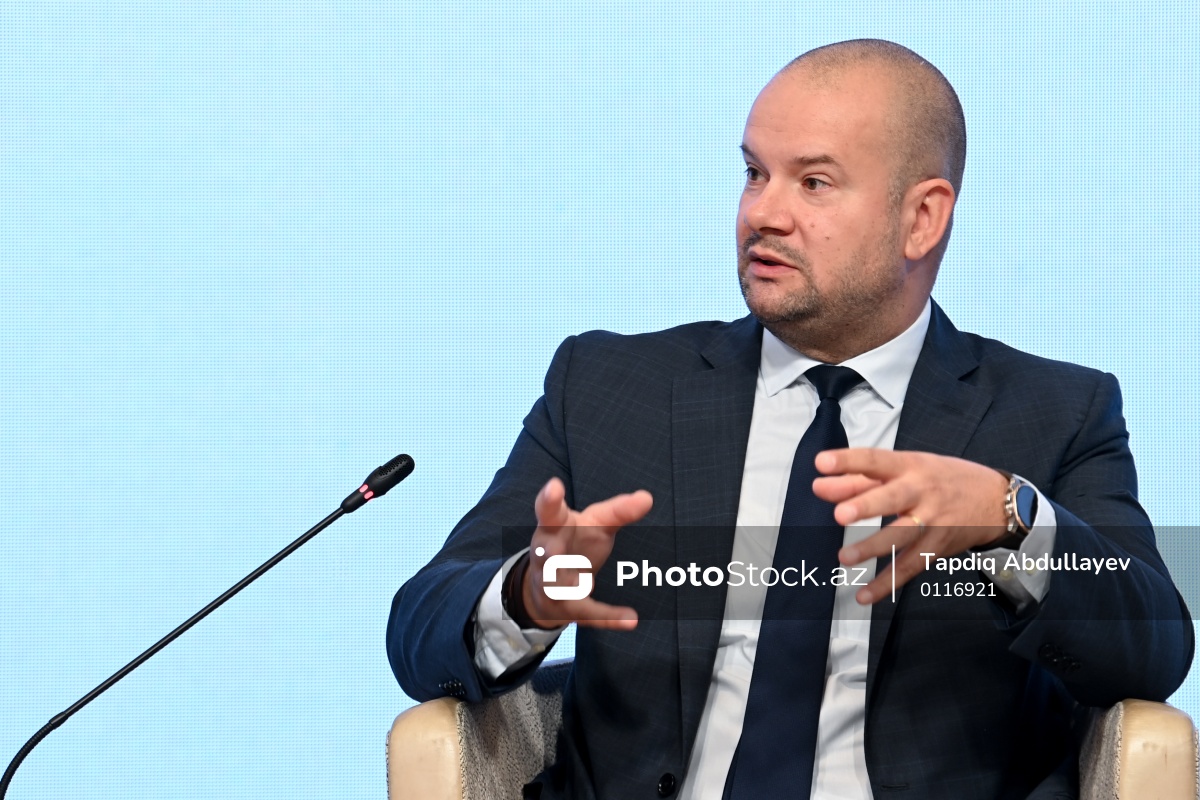 III Şuşa Qlobal Media Forumu çərçivəsində keçirilən “İnnovativ yanaşmalar: Rəqəmsal dövrdə media savadlılığı” mövzusunda paneldə iştirak edən Avropa Xəbər Agentlikləri Alyansının baş katibi Alexandru Giboi.
