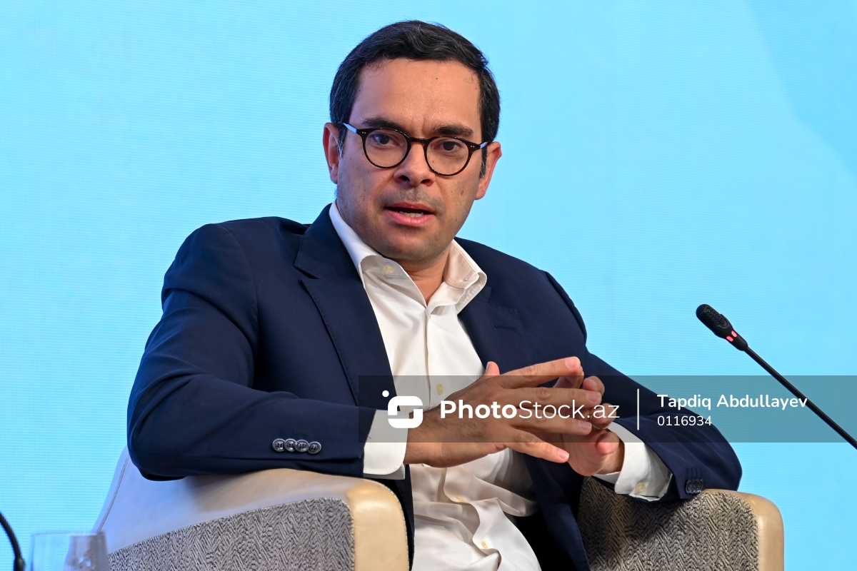III Şuşa Qlobal Media Forumu çərçivəsində keçirilən “İnnovativ yanaşmalar: Rəqəmsal dövrdə media savadlılığı” mövzusunda paneldə iştirak edən “Euronews” telekanalının aparat rəhbəri, “Euronews Baku”nun baş icraçı direktoru Fernando Soares.