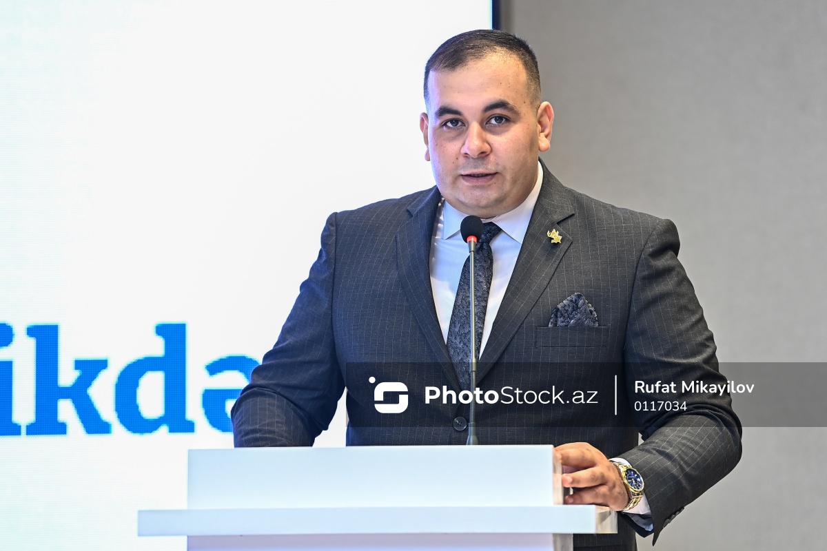 "Mədəniyyətimiz, Mətbuatımız: 150 İl Birlikdə!" adlı tədbirdə çıxış edən aparıcı Nicat Həsənzadə.